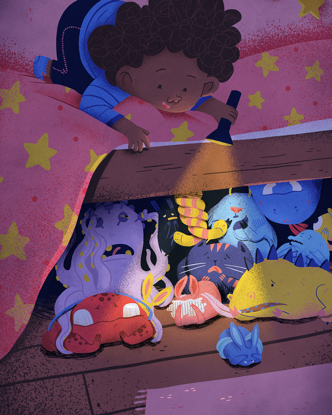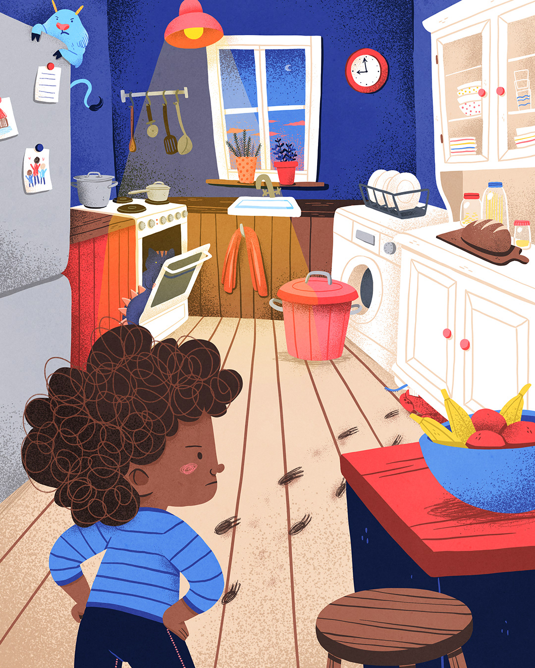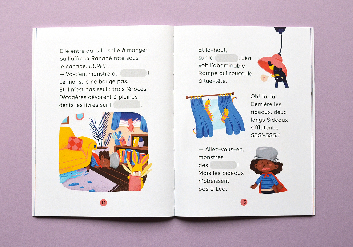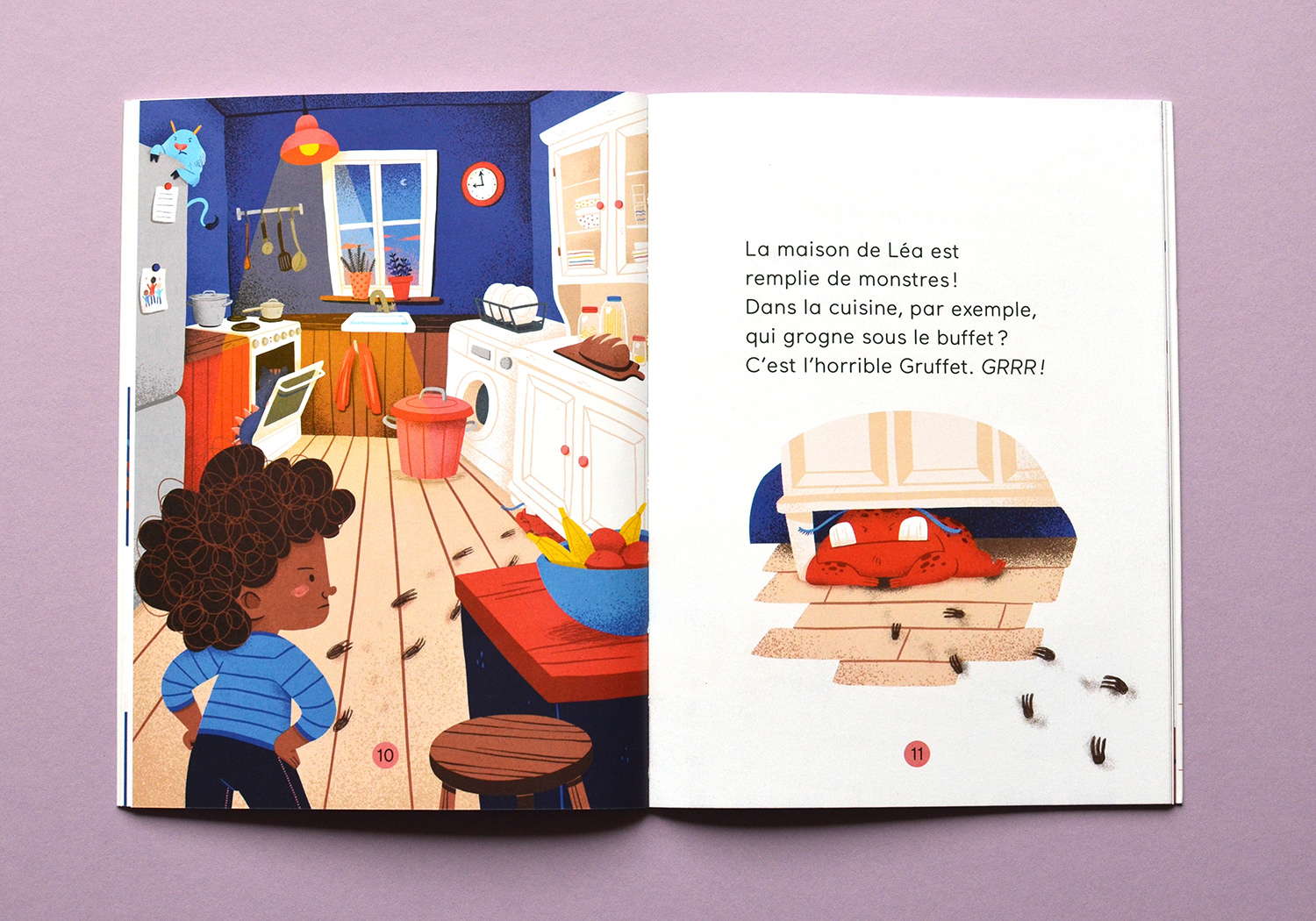 “Monsters in the house” is a children's book I did with french publisher MILAN about Léa, a girl who discovers a lot of monsters in her house but is not scared but decides to fight back! The little booklet is for preschool kids learning to read and write and has little games as well as a story.
