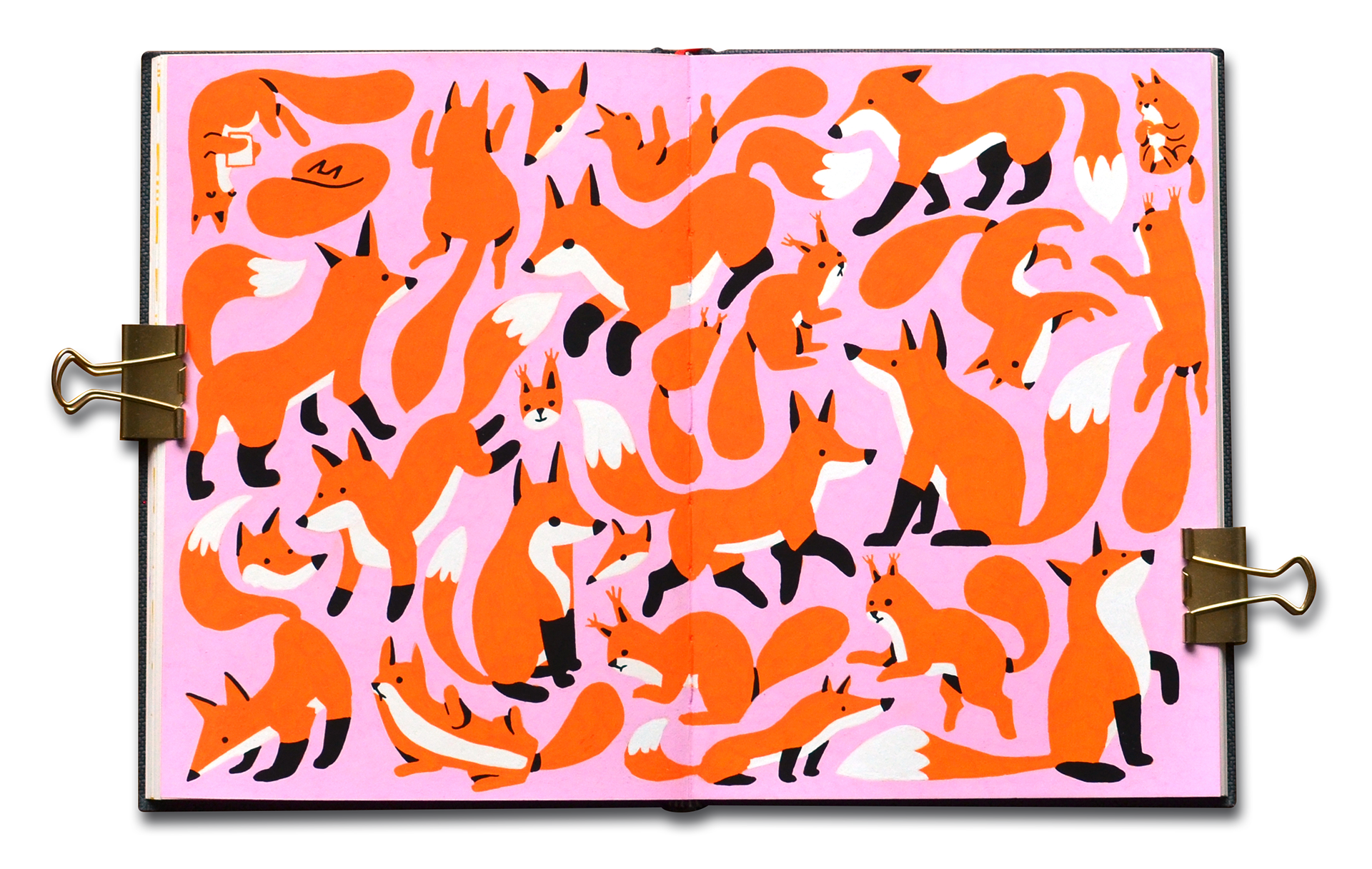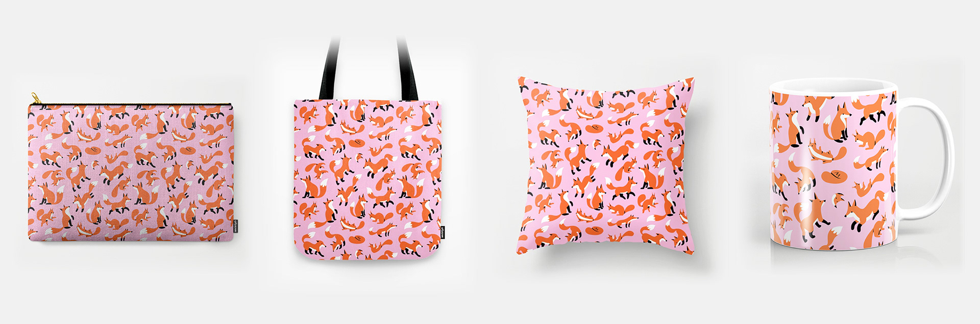 The pattern actually originated in a fox-and-squirrel pattern I made back in 2017 after a sketchbook doodle and used to sell on print-on-demand platforms like Society6.