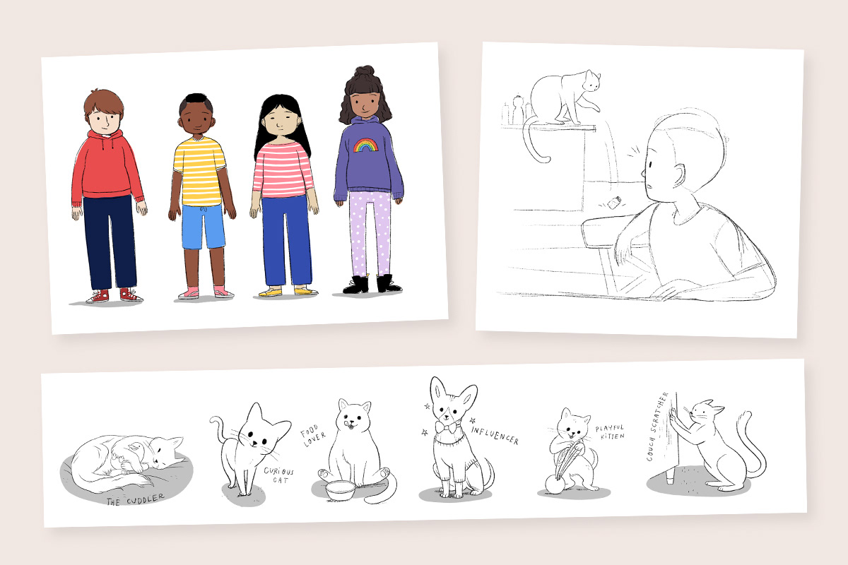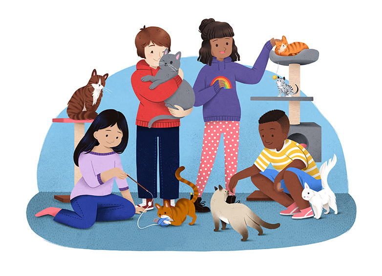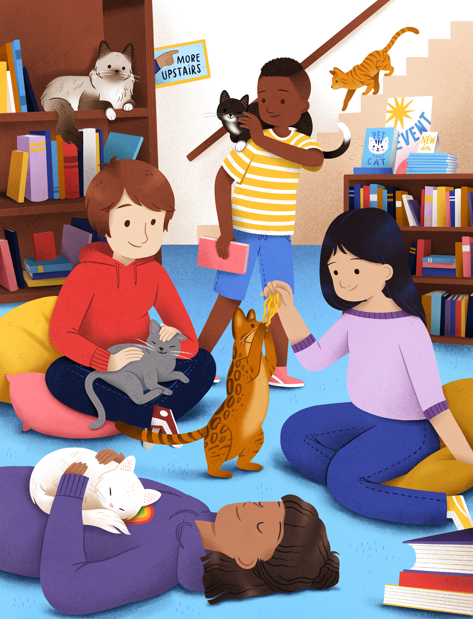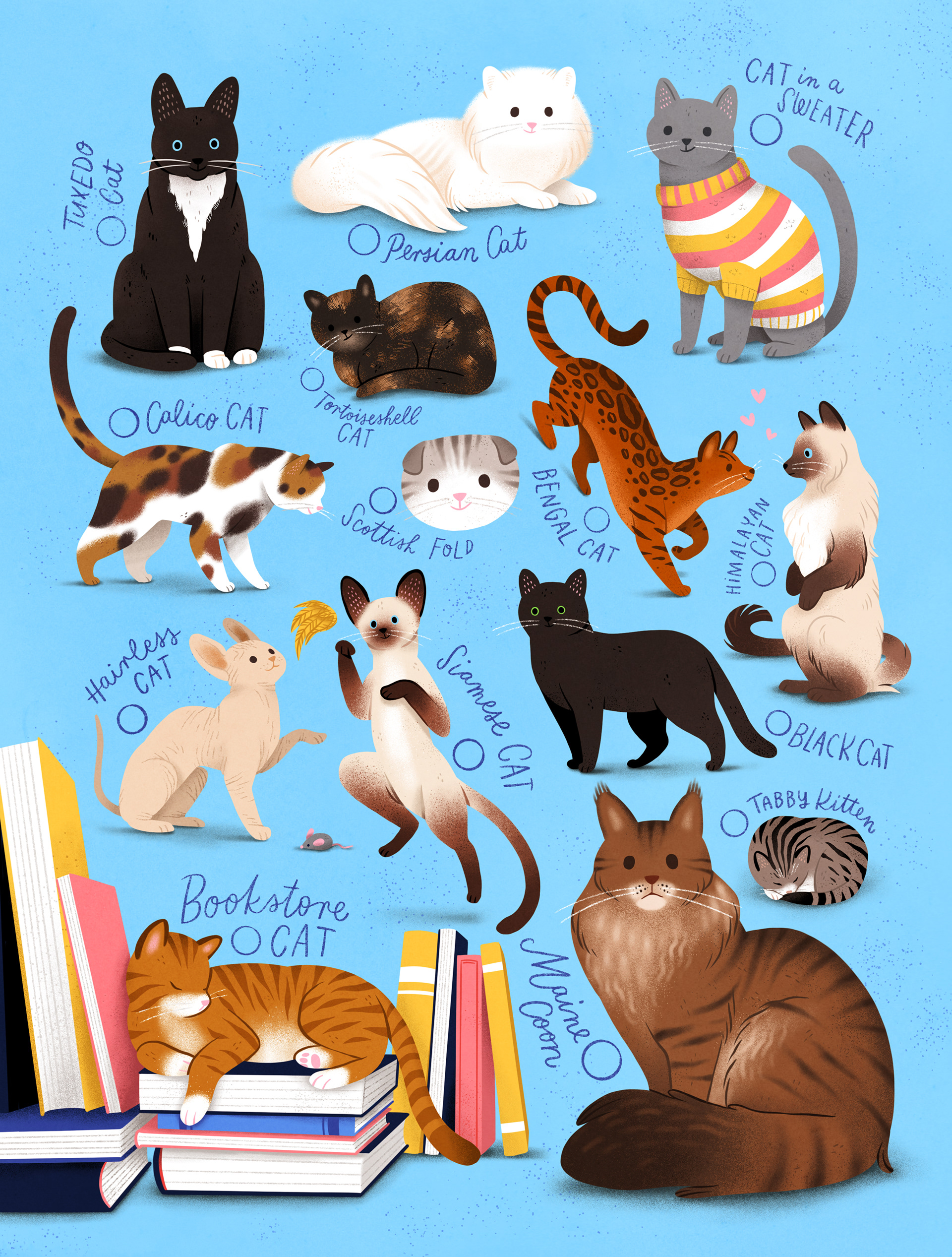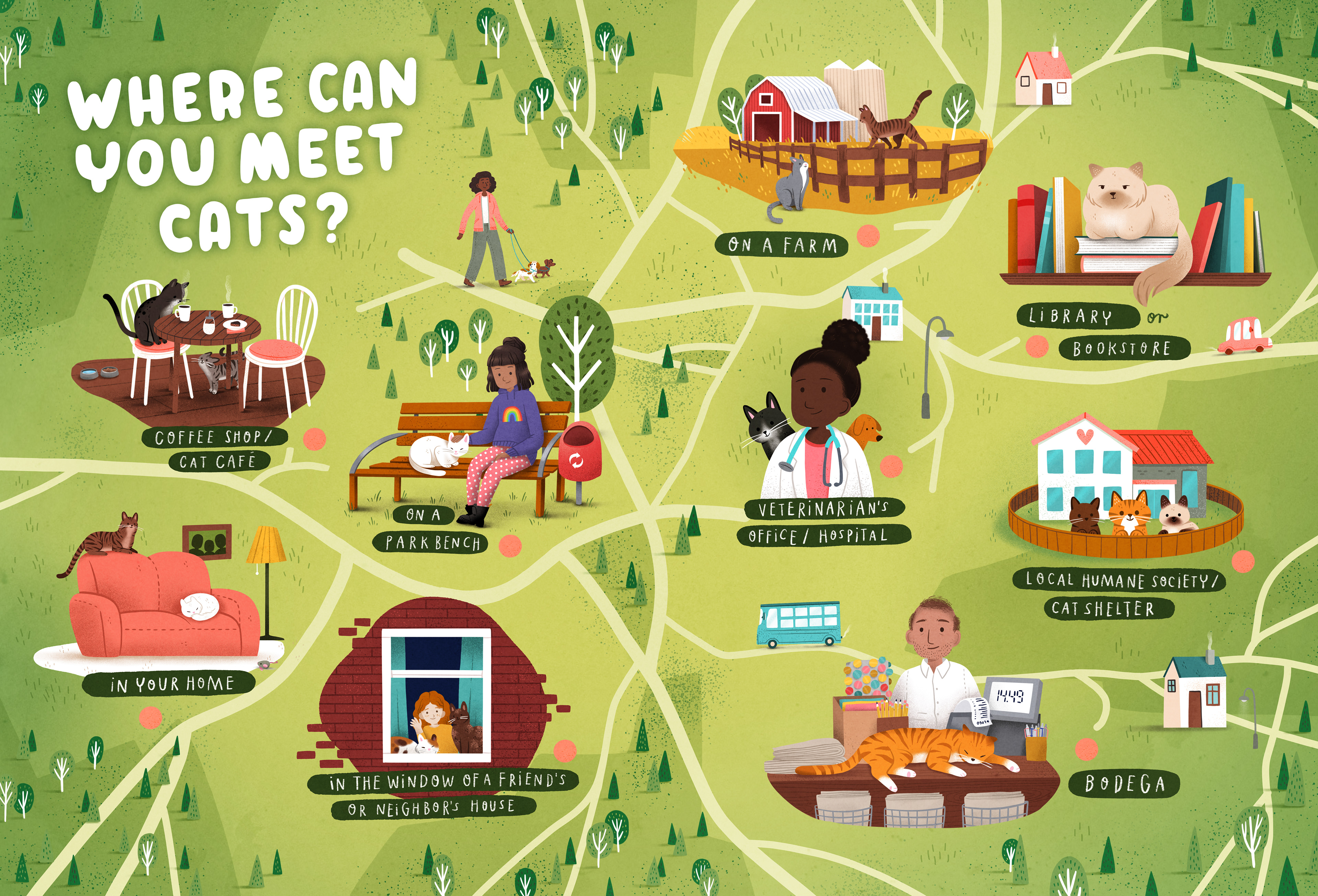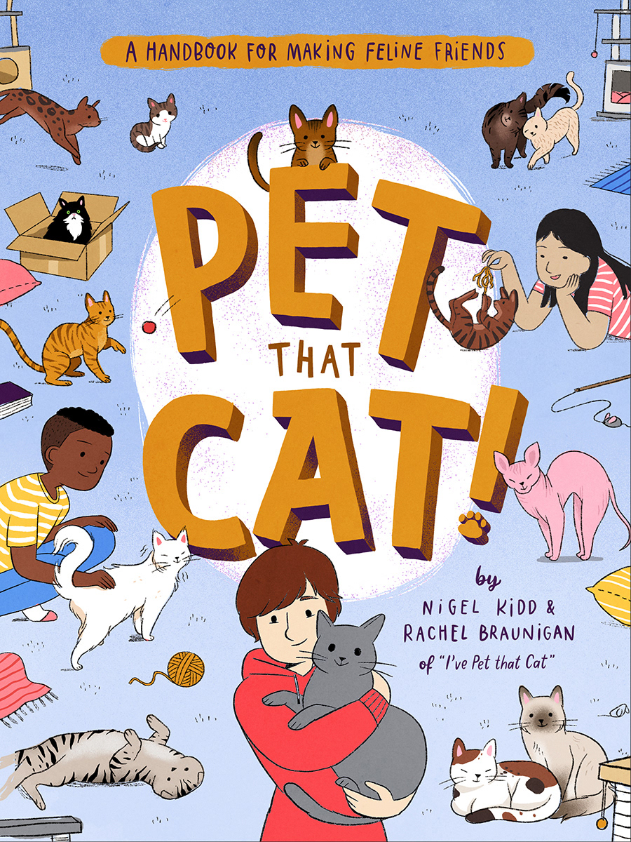 Pet That Cat! A Handbook for Making Feline Friends is an illustrated guide to meeting, petting, and caring for cats by Nigel and his mom, Rachel Braunigan. Teaching kids how cats communicate through body language, providing helpful tips for safely interacting with cats, and fun facts about cats to share with friends. I illustrated the cover as well as over 30 spot illustrations and 4 full pages for this dream project (because CATS!).