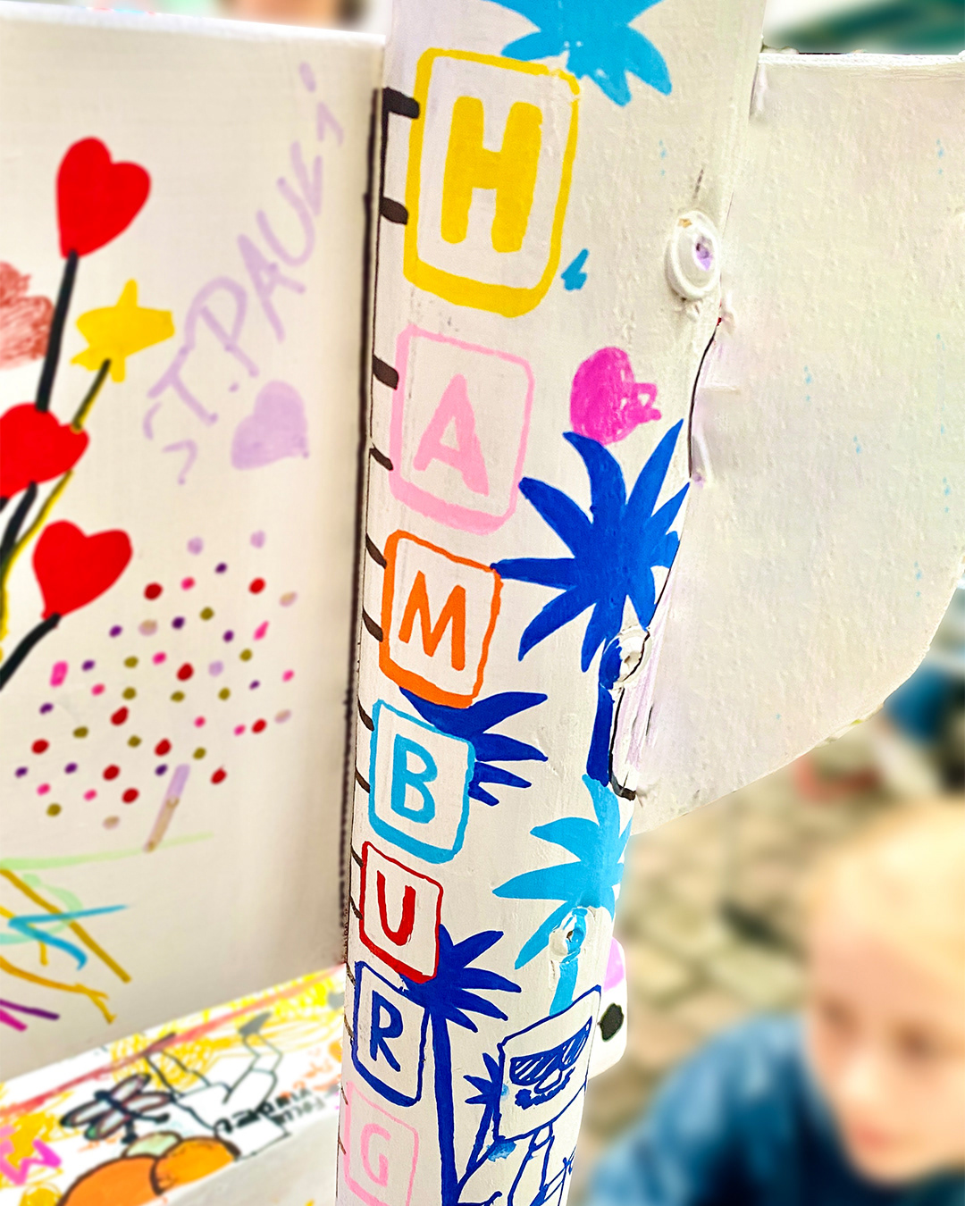 At the Altonale 2023 (a cultural festival in Hamburg), I had the opportunity to work creatively with spray cans and acrylic markers at their booth, while inviting visitors to join me and demonstrating how versatile the products can be used. Even though the weather could have been better 🌧️, lots of visitors – including families with children – stayed at the booth for a long time, tried out the pens firsthand, and engaged closely with the brand.